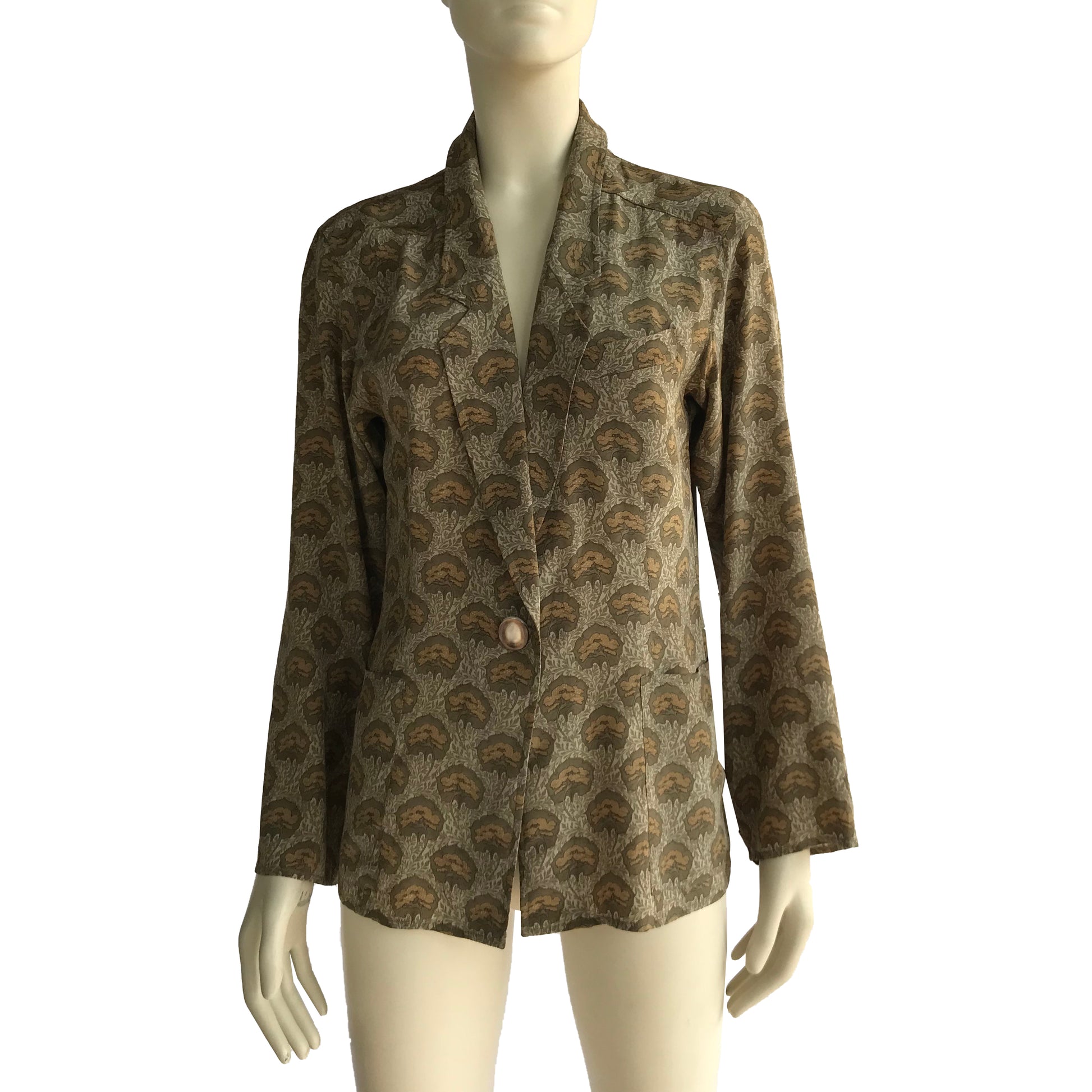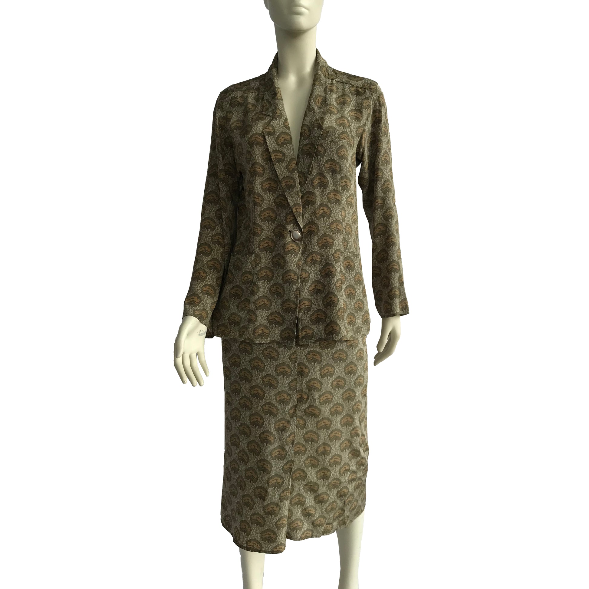 Coordinato Giorgio Armani camicia e gonna, 100% seta, chiusura con bottone anteriore, Taglia 44IT. Vintage anni 80.