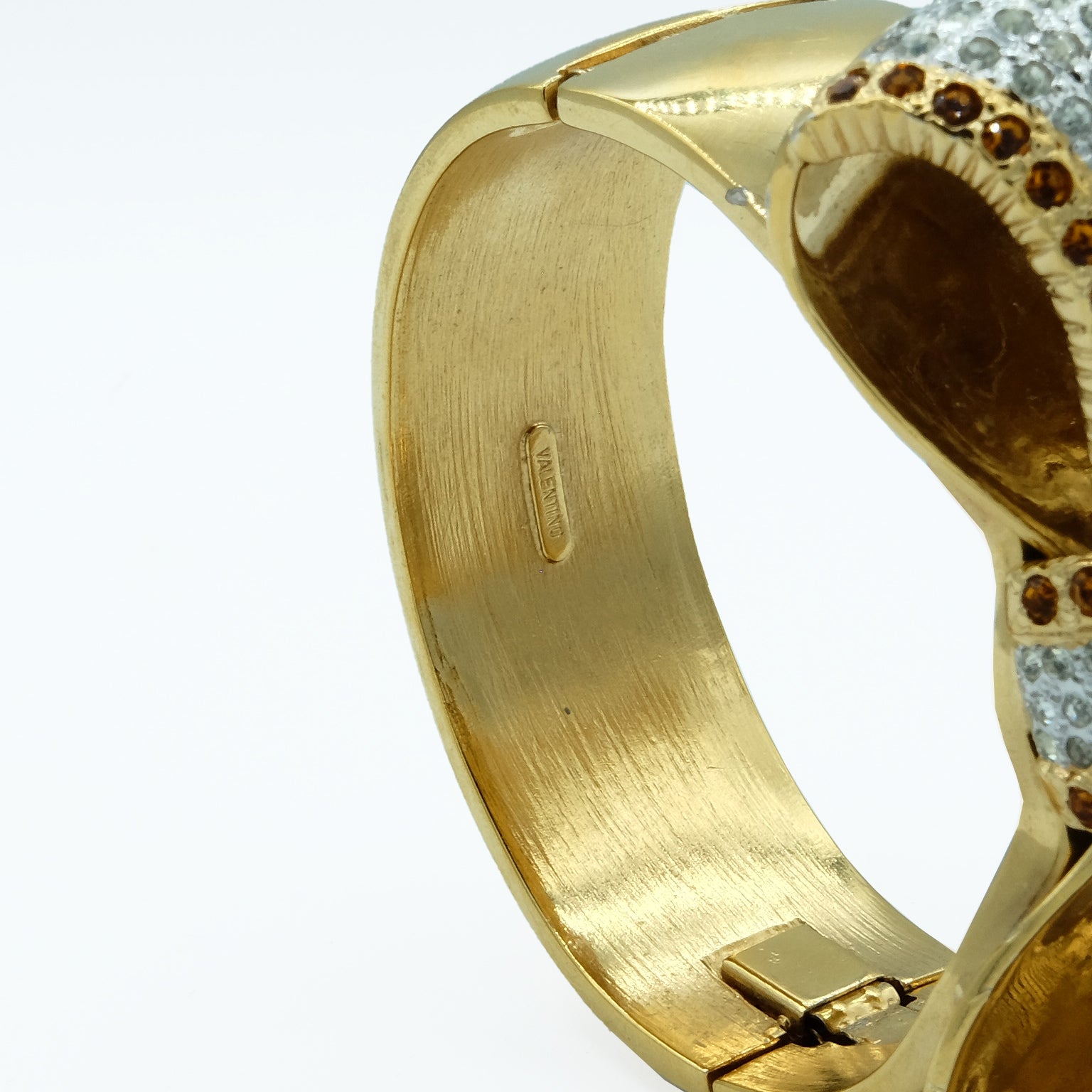 Bracciale Valentino Garavani rigido in metallo dorato con fiocco anteriore di pietre dure